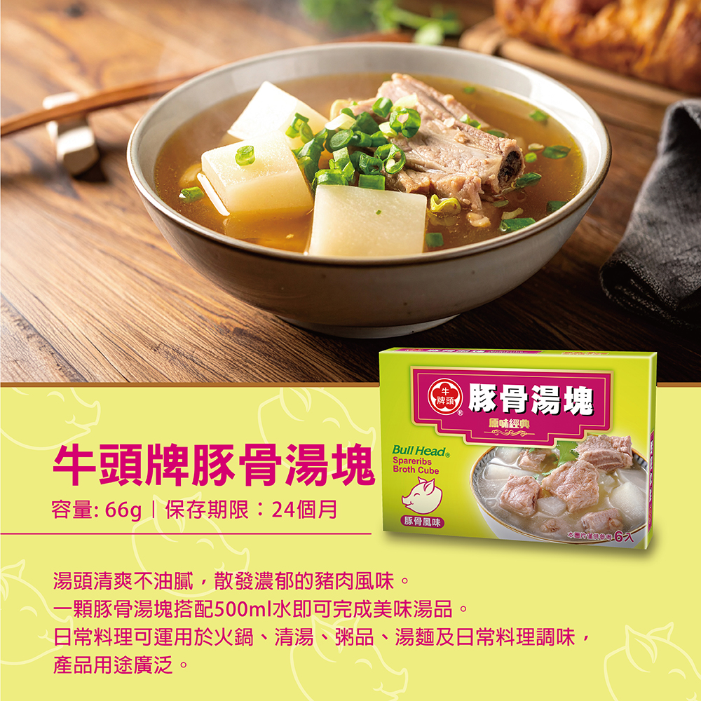 豚骨湯塊可運用於火鍋、清湯、粥品、湯麵及日常料理調味,產品用途廣泛。