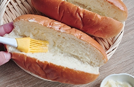 熱狗麵包塗抹美乃滋。