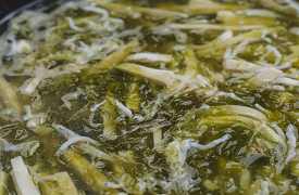 放入海菜、嫩豆腐以及吻仔魚煮滾