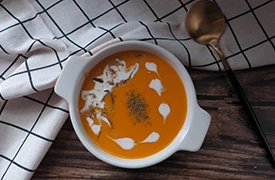 盛盤,放上煎好的鴻禧菇,用鮮奶油裝飾。