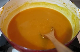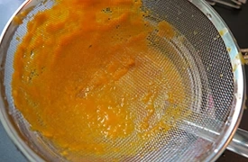 用篩網將南瓜濃湯過篩成細滑狀。