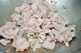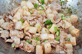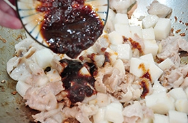 放入日本山藥丁,再加入沙茶醬與醬油。